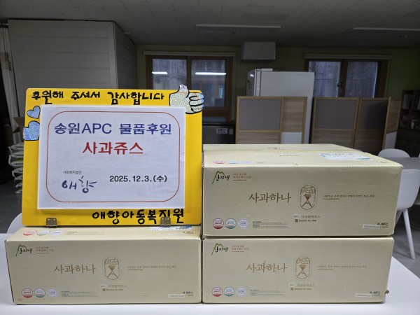 2025. 12. 3 영농조합법인 송원APC 물품 후원 페이지 정보 작성자 최고관리자 댓글 댓글 0건 조회Hit 6회 작성일Date 25-12-03 14:15 본문 2025. 12. 3 영농조합법인 송원APC 사과 주스 후원 고맙습니다^^ 목록 이전글2025. 12. 3 장상익 후원자님 물품 후원 25.12.03 다음글2025. 12. 3 야채 마당 물품 후원 25.12.03 댓글 0 댓글목록 등록된 댓글이 없습니다.