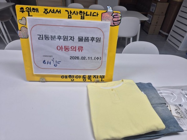 2026. 2. 11 김동분 후원자님 물품 후원 페이지 정보 작성자 최고관리자 댓글 댓글 0건 조회Hit 8회 작성일Date 26-02-12 13:31 본문 2026. 2. 11 김동분 후원자님 아동 의류 후원 고맙습니다^^ 목록 이전글2026. 2. 12 뚜레쥬르김천신음점 물품 후원 26.02.12 다음글2026. 2. 11 강영옥 후원자님 물품 후원 26.02.11 댓글 0 댓글목록 등록된 댓글이 없습니다.