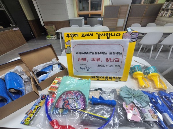 2025. 11. 27 개령서부초등학교 병설유치원, 신발, 의류, 장난감 후원 고맙습니다^^