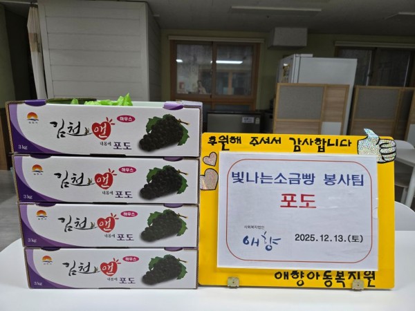 2025. 12. 13 빛나는 소금 빵 봉사 팀(높은 산 교회) 포도 후원 고맙습니다^^