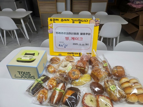 2025. 12. 22 뚜레쥬르김천신음점 물품 후원 페이지 정보 작성자 최고관리자 댓글 댓글 0건 조회Hit 5회 작성일Date 26-01-02 17:54 본문 2025. 12. 22 뚜레쥬르김천신음점 빵, 케이크 후원 고맙습니다^^ 목록 이전글2025. 12. 22 마들렌 카페 물품 후원 26.01.02 다음글2025. 12. 22 김천 성은 교회 후원금 전달 26.01.02 댓글 0 댓글목록 등록된 댓글이 없습니다.