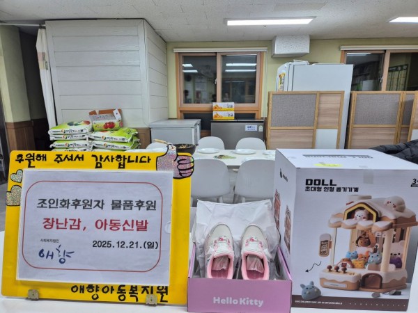 2025. 12. 22 조인화 후원자님 물품 후원 페이지 정보 작성자 최고관리자 댓글 댓글 0건 조회Hit 6회 작성일Date 26-01-02 17:58 본문 2025. 12. 22 조인화 후원자님 장난감, 아동 신발 후원 고맙습니다^^ 목록 이전글2025. 12. 23 마들렌 카페 물품 후원 26.01.02 다음글2025. 12. 22 박성희 후원자님 물품 후원 26.01.02 댓글 0 댓글목록 등록된 댓글이 없습니다.