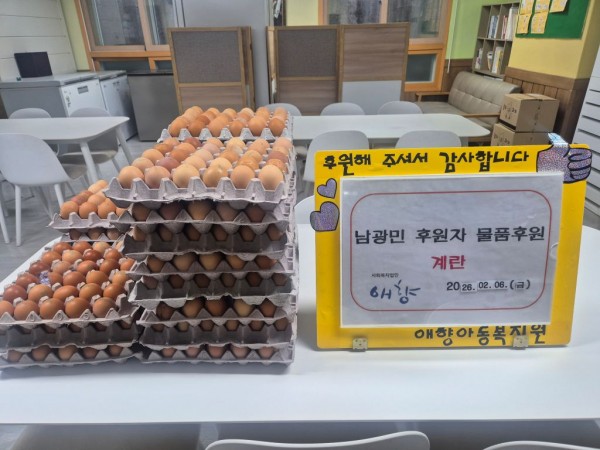 2026. 2. 6 남광민 후원자님 물품 후원 페이지 정보 작성자 최고관리자 댓글 댓글 0건 조회Hit 13회 작성일Date 26-02-06 16:19 본문 2026. 2. 6 남광민 후원자님 계란 후원 고맙습니다^^ 목록 이전글2026. 2. 8 두원감리교회 물품 후원 26.02.09 다음글2026. 2. 5 청심, 물품 후원 26.02.06 댓글 0 댓글목록 등록된 댓글이 없습니다.