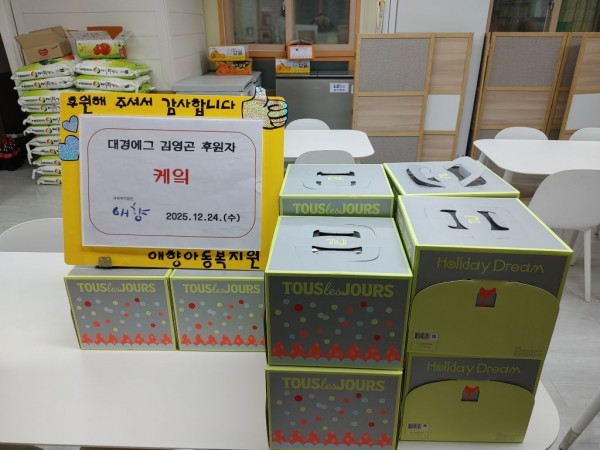 2025. 12. 24 대경에그 김영곤 후원자님 물품 후원 페이지 정보 작성자 최고관리자 댓글 댓글 0건 조회Hit 6회 작성일Date 26-01-05 15:16 본문 2025. 12. 24 대경에그 김영곤 후원자님 케이크 후원 고맙습니다^^ 목록 이전글2025. 12. 24 대신약국 물품 후원 26.01.05 다음글2025. 12. 24 남광민 후원자님 물품 후원 26.01.05 댓글 0 댓글목록 등록된 댓글이 없습니다.