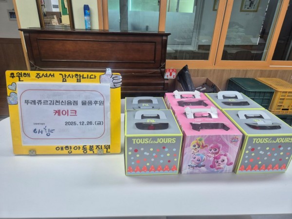 2025. 12. 26 뚜레쥬르김천신음점 물품 후원 페이지 정보 작성자 최고관리자 댓글 댓글 0건 조회Hit 2회 작성일Date 26-01-05 15:26 본문 2025. 12. 26 뚜레쥬르김천신음점 케이크 후원 고맙습니다^^ 목록 이전글2025. 12. 26 이미순 후원자님 물품 후원 26.01.05 다음글2025. 12. 26 강영옥 후원자님 물품 후원 26.01.05 댓글 0 댓글목록 등록된 댓글이 없습니다.