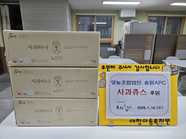 2026. 1. 14 영농조합법인 송원APC 물품 후원 페이지 정보 작성자 최고관리자 댓글 댓글 0건 조회Hit 3회 작성일Date 26-01-15 15:29 본문 2026. 1. 14 영농조합법인 송원APC 사과 쥬스 후원 고맙습니다^^ 목록 이전글2026. 1. 14 청심회 금전 후원 26.01.15 다음글2026. 1. 13 덕신 교회 물품 후원 26.01.15 댓글 0 댓글목록 등록된 댓글이 없습니다.