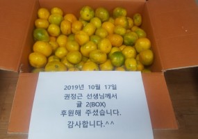 2020. 5. 21 이종인 후원자님께서 과일, 젤리 각 1박스 및 옷1벌 후원해 주셨습니다. 고맙습니다.^^