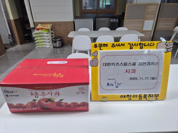 2025. 11. 17 대한키즈스윔스쿨 김천 캠퍼스 사과 후원 고맙습니다^^