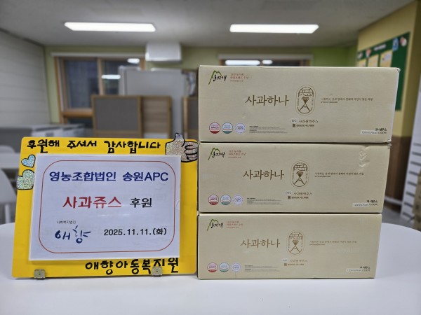 2025. 11. 11 영농조합법인 송원APC 물품 후원 페이지 정보 작성자 최고관리자 댓글 댓글 0건 조회Hit 22회 작성일Date 25-11-11 16:34 본문 2025. 11. 11 영농조합법인 송원APC 사과 쥬스 후원 고맙습니다^^ 목록 이전글2025. 11. 12 임태훈 후원자님 물품 후원 25.11.12 다음글2025. 11. 11 남광민 후원자님 물품 후원 25.11.11 댓글 0 댓글목록 등록된 댓글이 없습니다.