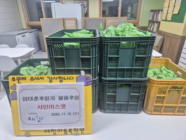 2025. 11. 12 임태훈 후원자님 물품 후원 페이지 정보 작성자 최고관리자 댓글 댓글 0건 조회Hit 21회 작성일Date 25-11-12 17:44 본문 2025. 11. 12 임태훈 후원자님 샤인머스켓 후원 고맙습니다^^ 목록 이전글2025. 11. 14 손영리 후원자님 물품 후원 25.11.14 다음글2025. 11. 11 영농조합법인 송원APC 물품 후원 25.11.11 댓글 0 댓글목록 등록된 댓글이 없습니다.