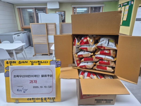 2025. 10. 10 초록우산어린이재단 물품 후원 페이지 정보 작성자 최고관리자 댓글 댓글 0건 조회Hit 31회 작성일Date 25-10-22 14:59 본문 2025. 10. 10 초록우산어린이재단 과자 후원 고맙습니다^^ 목록 이전글2025. 10. 11 김종철 후원자님 물품 후원 25.10.22 다음글2025. 10. 10 장상익 후원자님 물품 후원 25.10.22 댓글 0 댓글목록 등록된 댓글이 없습니다.