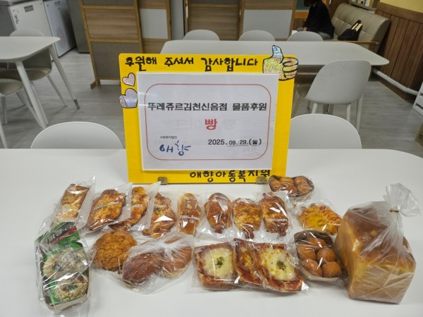 2025. 9. 29 뚜레쥬르김천신음점 물품 후원 페이지 정보 작성자 최고관리자 댓글 댓글 0건 조회Hit 43회 작성일Date 25-09-29 15:46 본문 2025. 9. 29 뚜레쥬르김천신음점 빵 후원 고맙습니다^^ 목록 이전글2025. 9. 30 야채 마당 물품 후원 25.10.20 다음글2025. 9. 27 유미영, 강정임 후원자님 물품 후원 25.09.29 댓글 0 댓글목록 등록된 댓글이 없습니다.