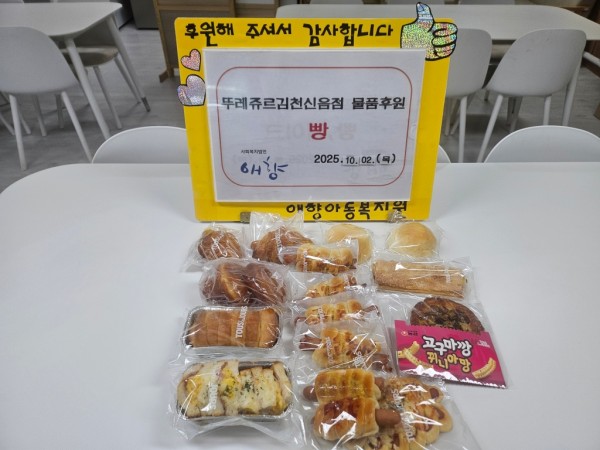 2025. 10. 2 뚜레쥬르김천신음점 물품 후원 페이지 정보 작성자 최고관리자 댓글 댓글 0건 조회Hit 31회 작성일Date 25-10-22 14:46 본문 2025. 10. 2 뚜레쥬르김천신음점 빵 후원 고맙습니다^^ 목록 이전글2025. 10. 4 베다니 성화원 물품 후원 25.10.22 다음글2025. 10. 2 남광민 후원자님 물품 후원 25.10.22 댓글 0 댓글목록 등록된 댓글이 없습니다.