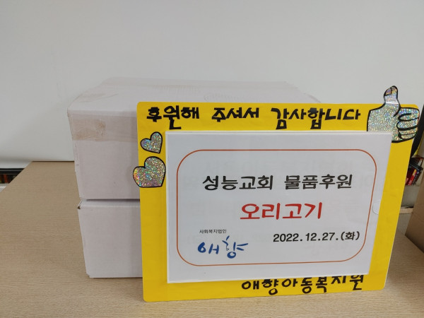 2022. 12. 27 성능교회 물품후원 페이지 정보 작성자 최고관리자 댓글 댓글 0건 조회Hit 1,509회 작성일Date 22-12-27 17:13 본문 2022. 12. 27 성능교회 오리고기 후원 고맙습니다.^^ 목록 이전글2022. 12. 27 마들렌상점 물품후원 23.01.03 다음글2022. 12. 25 법인 아사장님 물품후원 22.12.27 댓글 0 댓글목록 등록된 댓글이 없습니다.