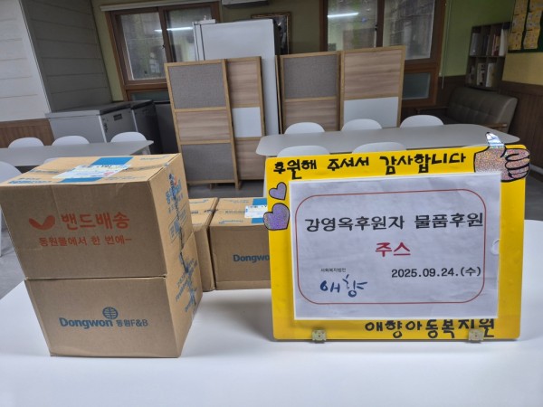 2025. 9. 24 강영옥 후원자님 물품 후원 페이지 정보 작성자 최고관리자 댓글 댓글 0건 조회Hit 47회 작성일Date 25-09-26 10:58 본문 2025. 9. 24 강영옥 후원자님 주스 후원 고맙습니다^^ 목록 이전글2025. 9. 25 뚜레쥬르김천신음점 물품 후원 25.09.26 다음글2025. 9. 22 정담 두부 물품 후원 25.09.22 댓글 0 댓글목록 등록된 댓글이 없습니다.