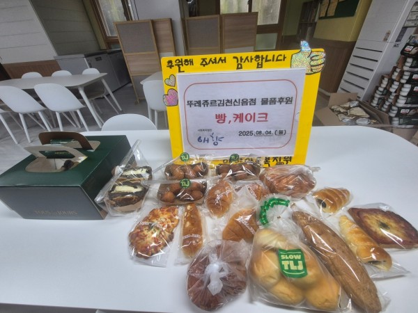2025. 8. 4 뚜레쥬르김천신음점 물품 후원 페이지 정보 작성자 최고관리자 댓글 댓글 0건 조회Hit 74회 작성일Date 25-08-06 16:40 본문 2025. 8. 4 뚜레쥬르김천신음점, 빵, 케이크 후원, 고맙습니다^^ 목록 이전글2025. 8. 4 새김천농협 물품 후원 25.08.06 다음글2025. 7. 31 마들렌 물품 후원 25.07.31 댓글 0 댓글목록 등록된 댓글이 없습니다.