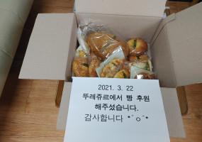 2021. 10. 11 뚜레쥬르김천신음점 빵1박스 후원 고맙습니다.^^